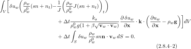 Finally, the Jacobian contribution from the permeability term is rather complex in the general case of the nonlinear Forchheimer flow law. Although we include it in the software, here we only write the linearized flow version reflecting Darcy's law (