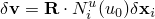 Linearization of Equation 5.1.1–11 and Equation 5.1.1–12 results in the following expressions for the first variations of the anchor coordinates and the contact plane's tangent: