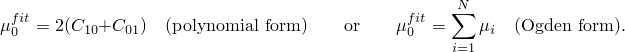 The particular material models described above—the Mooney-Rivlin and neo-Hookean forms—can also be obtained from the general Ogden strain energy potential for special choices of
