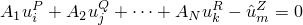 is a nodal variable at node P, degree of freedom i; and the